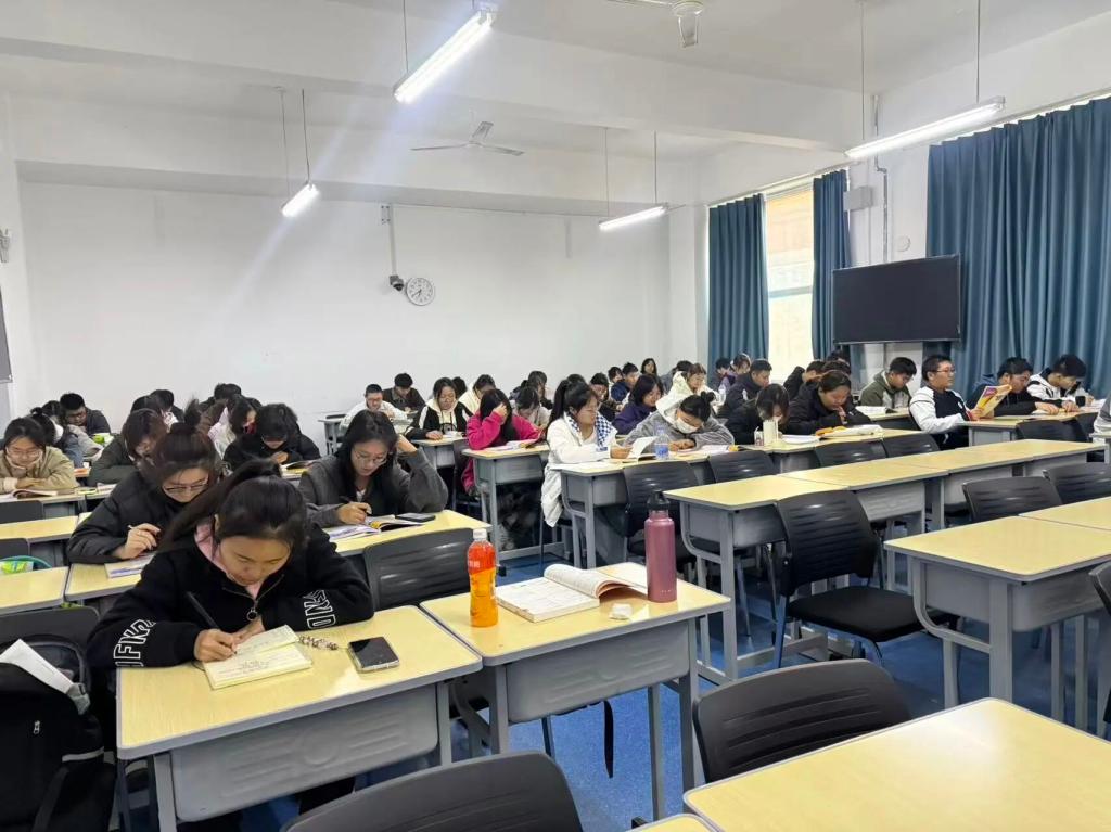 2025级的同学们手持书本,在教室进行晨读,字句诵读声清亮且富有节奏,单词、专业知识点在晨光中愈发清晰,以专注姿态迈出自主学习的第一步。